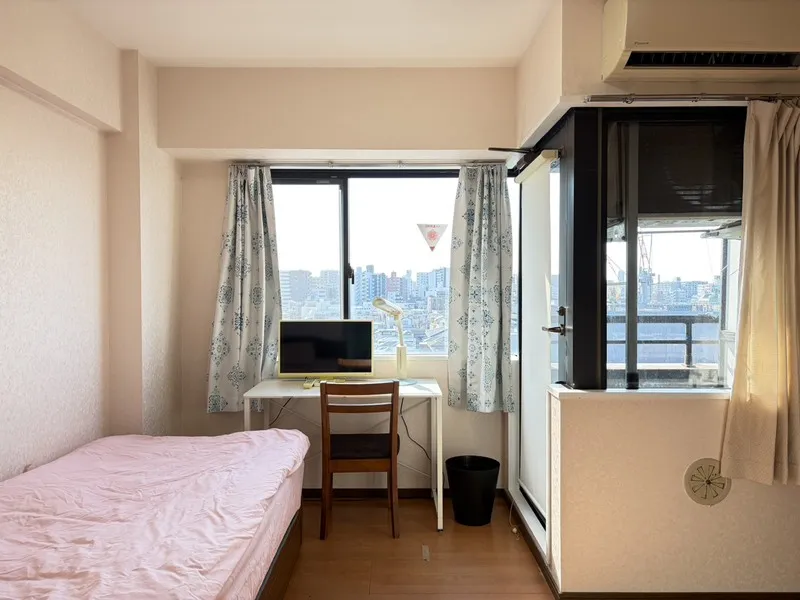最寄り駅まで徒歩1分。大きな窓があり、壁はクロス貼り、床はフローリングで、個人用の洗濯機も完備しています。大きなクローゼットも備えており、収納に便利です。
