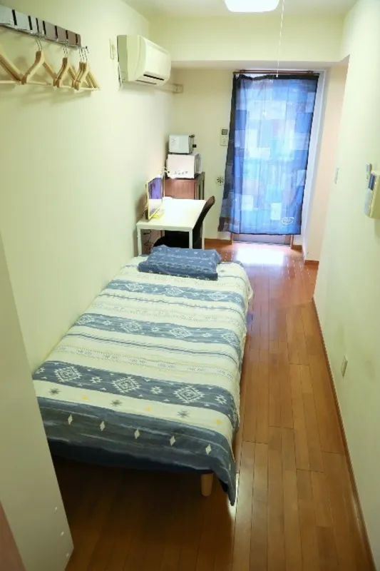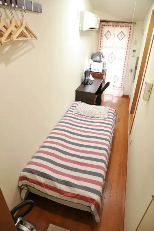 家具・家電付きのゲストハウスタイプのお部屋で、ベランダもございます。周囲の環境は静かで、快適にお過ごしいただけます。