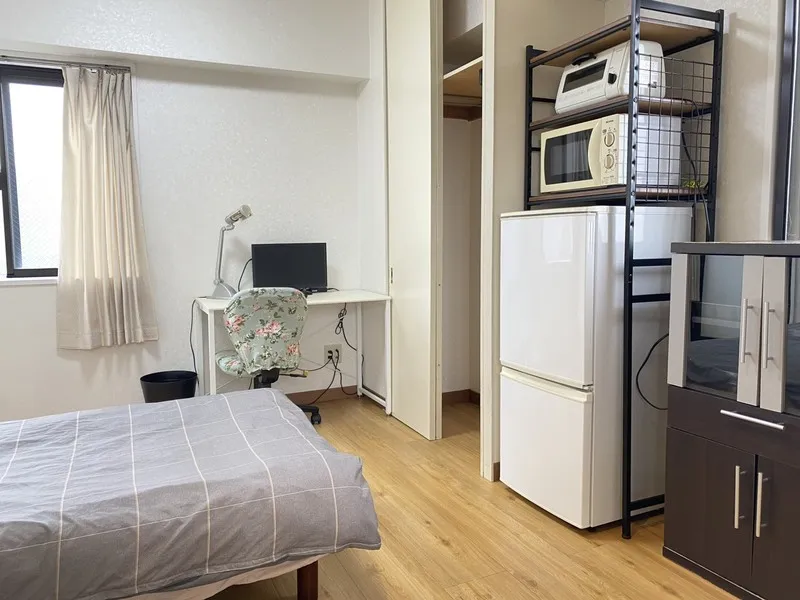 最寄り駅まで徒歩1分。大きな窓があり、壁はクロス貼り、床はフローリングで、清潔感のある室内です。大きなクローゼットも備えており、収納にも便利です。
