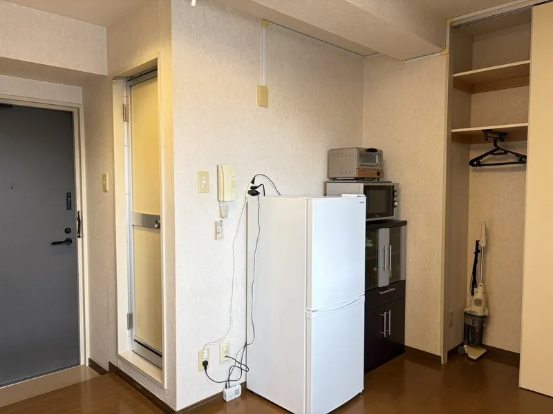 最寄り駅まで徒歩1分。大きな窓があり、壁はクロス貼り、床はフローリングで、清潔感のある室内です。大きなクローゼットも備えており、収納にも便利です。