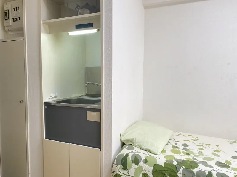 距离最近的车站仅需步行1分钟。房间有一扇大窗户,墙面为壁纸装饰,地板为木质地板,并且配有个人使用的洗衣机。房内还配备了大型衣柜,方便收纳。
