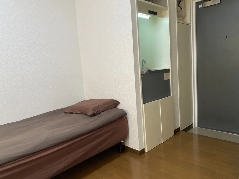 距离最近的车站仅需步行1分钟。房间有一扇大窗户,墙面为壁纸装饰,地板为木质地板,并且配有个人使用的洗衣机。房内还配备了大型衣柜,方便收纳。