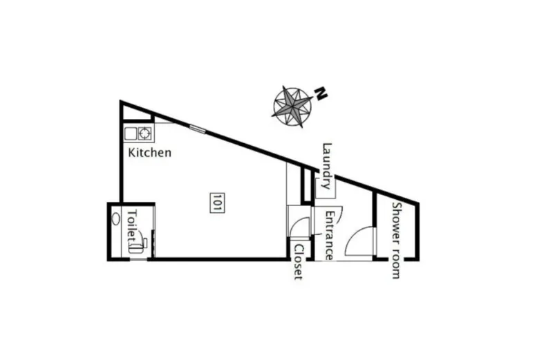 ワンルームタイプの広い部屋。 室内に専用トイレ(ウォシュレット)・ミニキッチンがあります。 共用部分には、シャワールームと洗濯機があります。 高級感溢れる綺麗な室内。 壁はクロス貼、床材はフローリング貼。 家具・家電付きです。