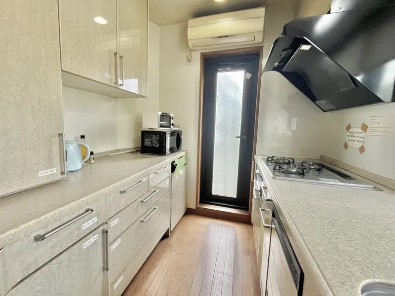 空调、床、寝具、桌椅、檯灯、个人用餐具(一套) 共用部分: 室内电梯, 玄关为自动门锁并附有彩色影视对讲机,液晶电视(BS・CS对应) 系统厨具、大型冰箱、 淨水器、微波炉、烤箱、洗碗机、免治马桶、淋浴设备、洗烘衣机、自行车停车场