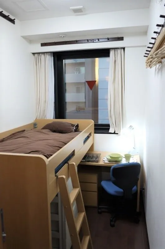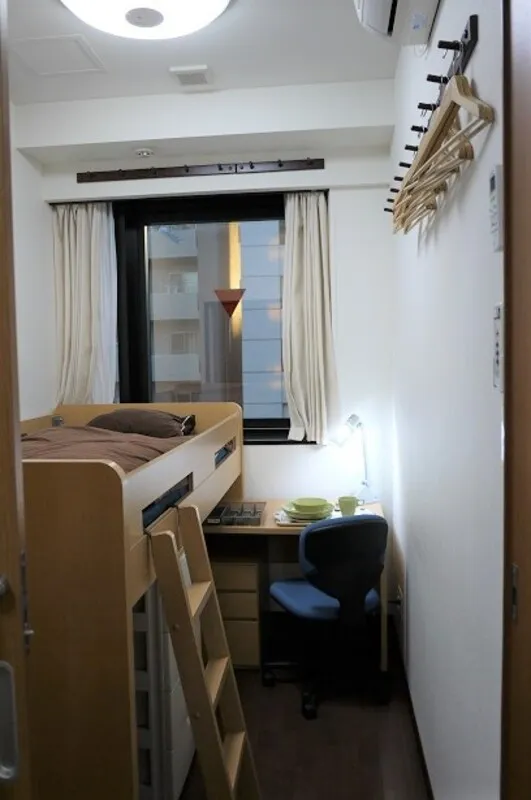 空调 (冷气・暖气) 个人用餐具1组 书桌椅 衣橱 照明设备 互联网(免费Wi-Fi) 枕头(附枕套) 棉被(附棉被套) 床垫(附床单) 高架床 衣架 (×10)