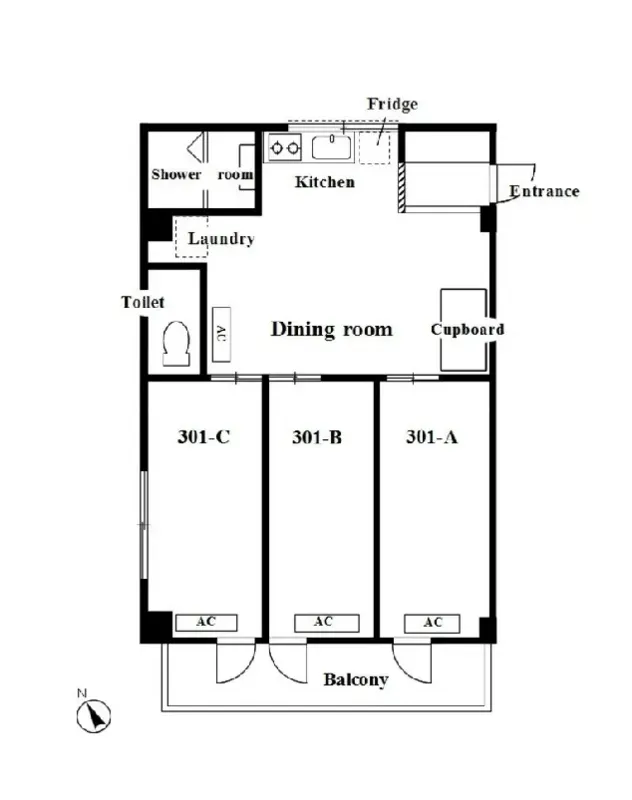 Air-conditioner Desk & Chair Closet Light Internet (Free Wi-Fi ) Pillow (with cover) Duvet (with cover) Futon (with cover) Bunk bed Hanger (×10)