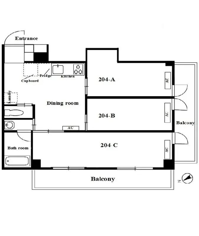 共有三个房间的温馨合租房。备有家具与家电,可舒适入住。地点安静便利,前往新宿、涩谷也十分方便。